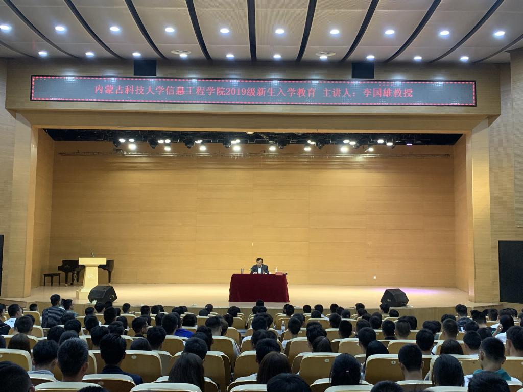 2019年9月1号上午9时,信息工程公司在音乐报告厅举行2019级新生入学专题教育,邀请公司李国雄教授作题为《树立目标明确方向尽快适应走向成功》的专题讲座。讲座由公司副书记、副经理段志峰主持,学团办辅导员、大一新生班主任以及2019级全体新生参加讲座。