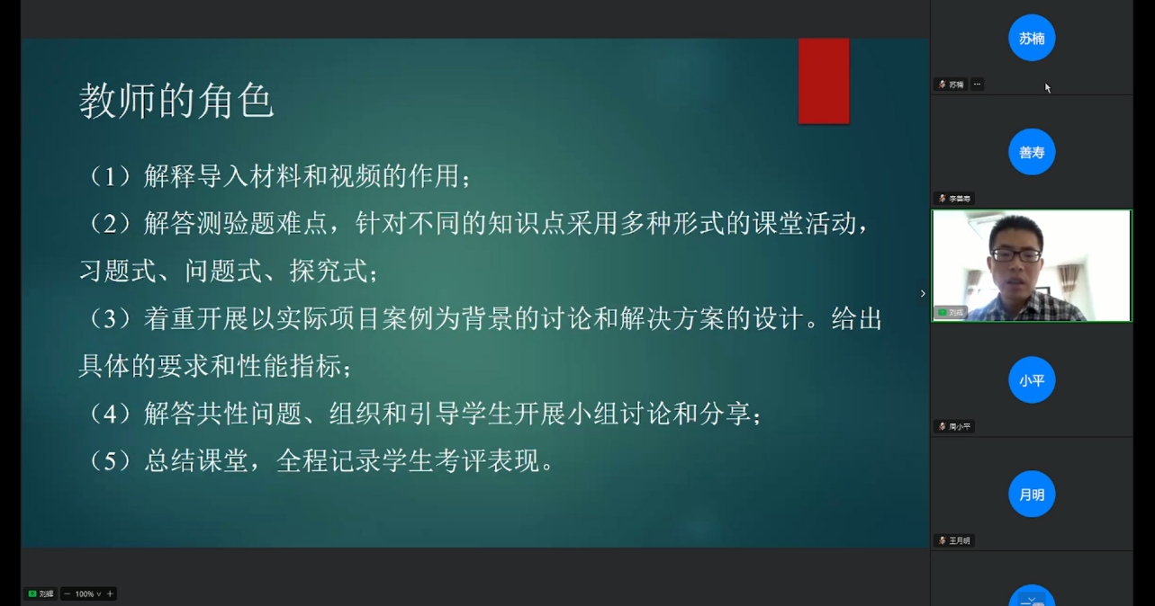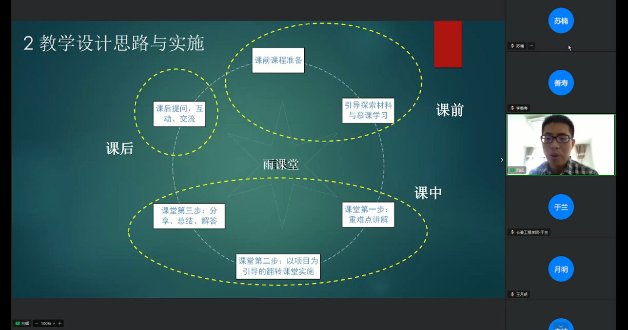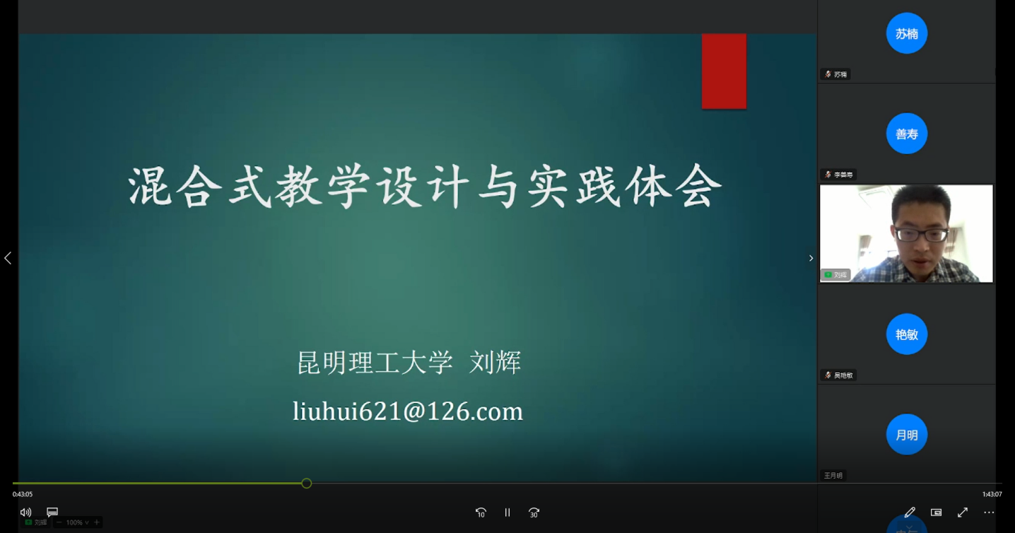 昆明理工大学刘辉教授以“浅谈混合式教学设计与实践”为题,通过通俗易懂的方法展示了混合式教学设计在课堂中实践,并分享实践体会。