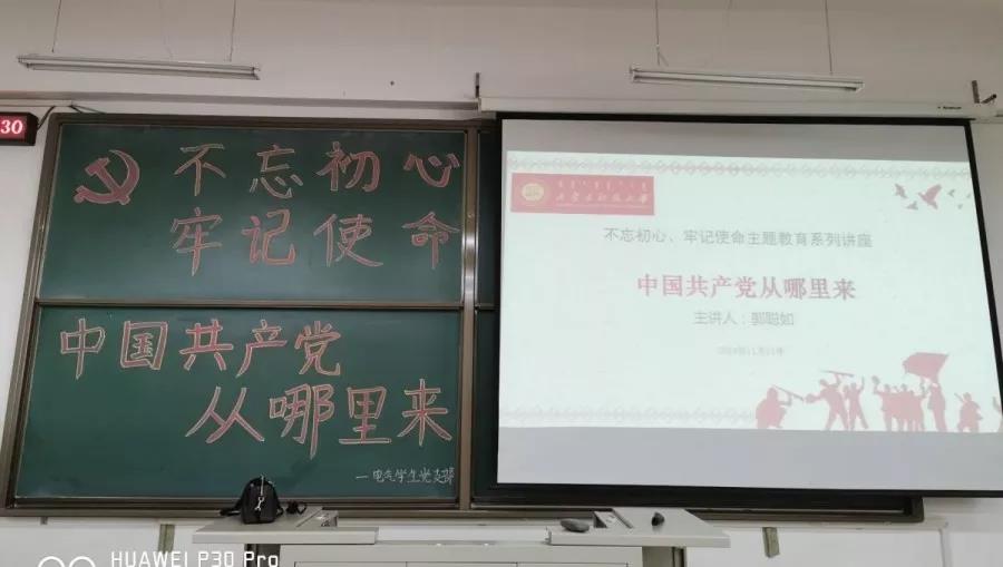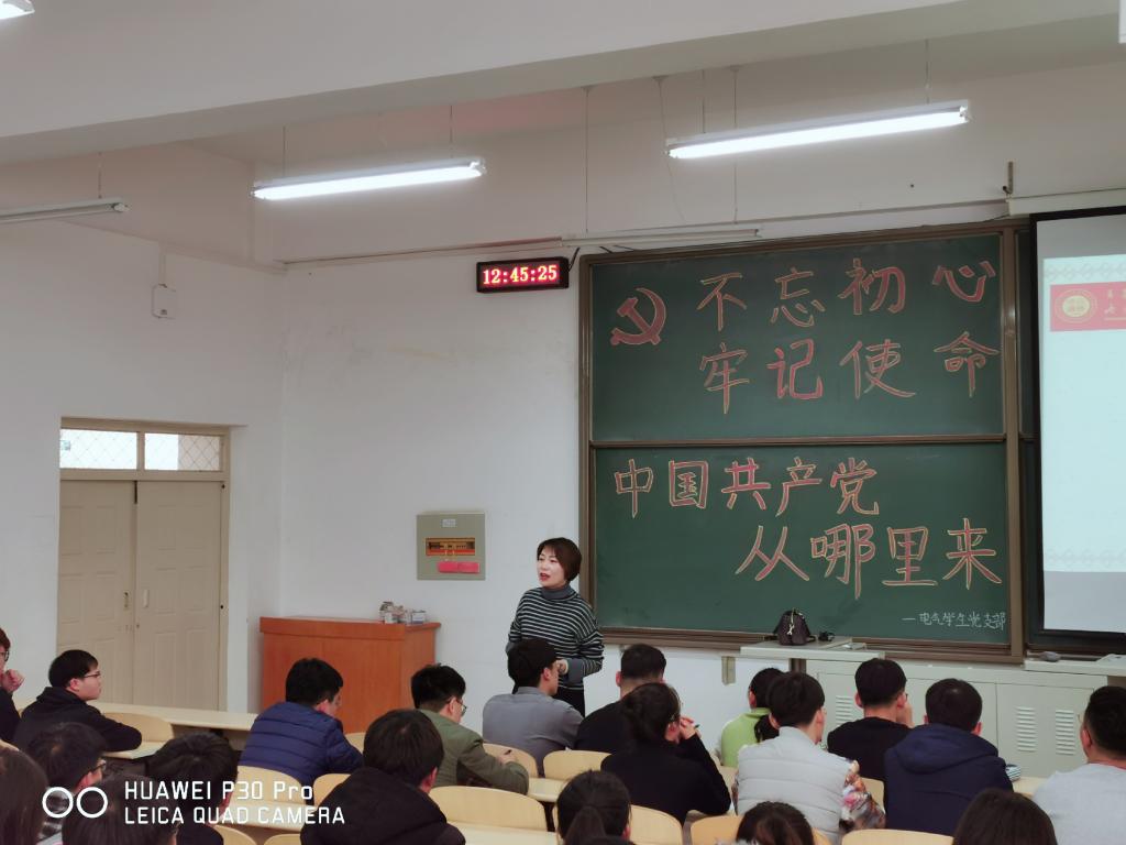 为增强支部员工爱国主义情怀、民族荣誉感和使命感,电气员工党支部书记郭聪如老师于2019年11月13日中午12:40在逸夫楼G304为支部全体同学讲授了题为《中国共产党从哪里来》的主题党课,本次党课也是“不忘初心 牢记使命”主题教育的重要内容。支部全体成员出席聆听了本次党课。