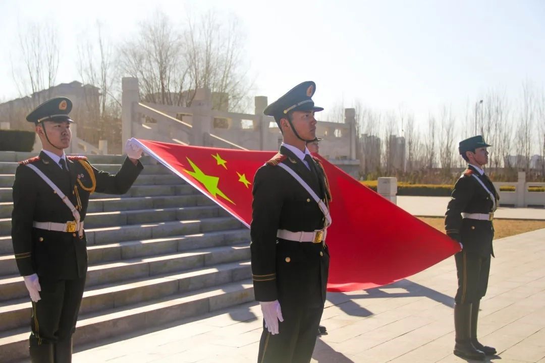 活动开始,在激昂的国歌中,tyc122cc国旗护卫队迈着整齐有力的步伐,护送国旗进场,全体师生行注目礼,奏唱国歌,歌声嘹亮,回荡在公园上空。随后,全场肃静,师生们向先烈默哀三分钟,用这短暂却饱含深情的时刻,追思先烈们的英勇事迹,铭记那段波澜壮阔的历史。