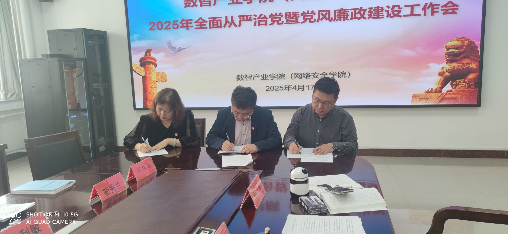 本次会议最后,公司党委书记王静宇和经理张超与相关人员签订了廉洁建设目标责任书、廉洁承诺及意识形态责任书和实验室安全责任书。